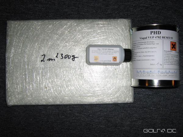 ich biete hier meine 2m² Gfk-Fasermatte + Spachtelmasse und Härter an.